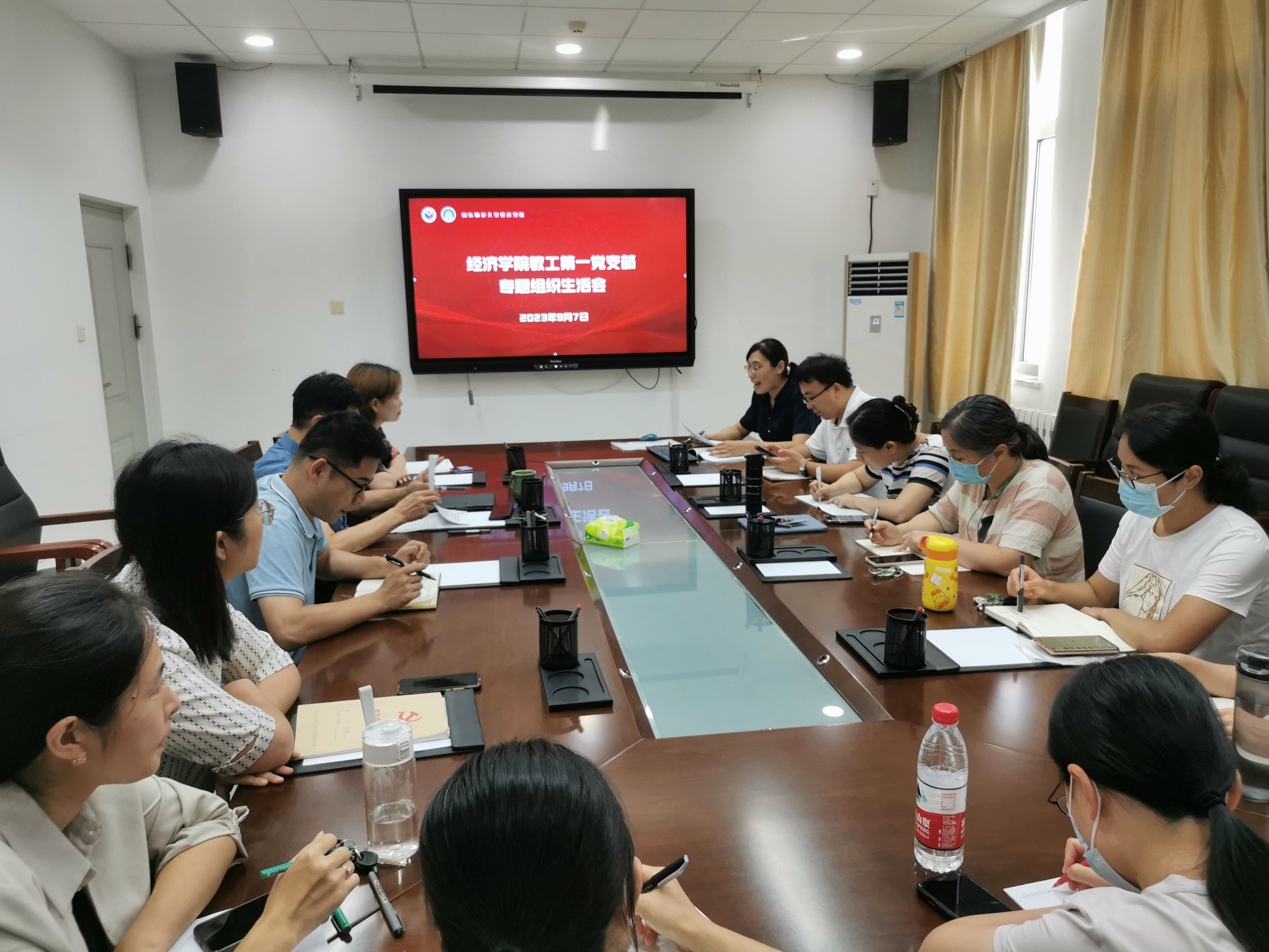 2023年9月7日下午,经济学院教工第一党支部在厚德楼414召开以“学习贯彻习近平新时代中国特色社会主义思想”为主题的专题组织生活,经济学院党委书记张军参加会议,会议由支部书记朱燕主持,支部全体党员参加。
