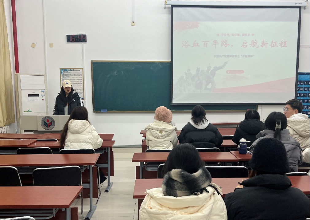 活动伊始,主讲人王琪通过生动的讲述,带领与会党员重温了那段艰苦卓绝的长征岁月,详细阐述了中国共产党人在长征途中展现出的坚定信念、英勇奋斗和团结协作的精神风貌。随后,王琪深入剖析了长征精神的内涵和意义,分析了中国共产党人在长征过程中体现出的乐于吃苦、不惧艰难的革命乐观主义,勇于战斗、无坚不摧的革命英雄主义,重于求实、独立自主的创新胆略,善于团结、顾全大局的集体主义,强调同学们要深刻理解长征精神的时代内涵和价值意义,以实际行动践行青年党员的责任使命。