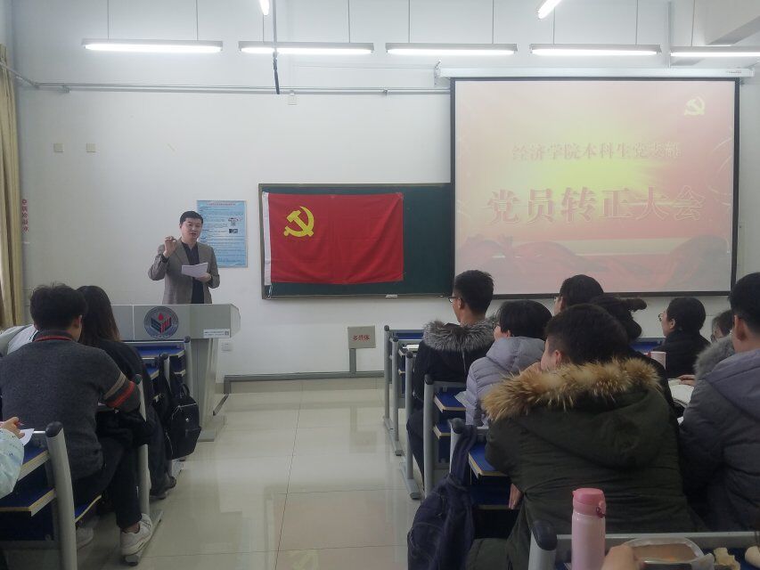 12月6日,经济学院本科生党支部预备党员转正大会在长清湖校区厚德楼305教室召开。经济学院本科生党支部书记、2015级辅导员吕益国,党支部副书记、2016级辅导员王茜,党支部组织委员、2017级辅导员张晗出席本次转正大会。会议由吕益国主持,支部全体党员共同参与。