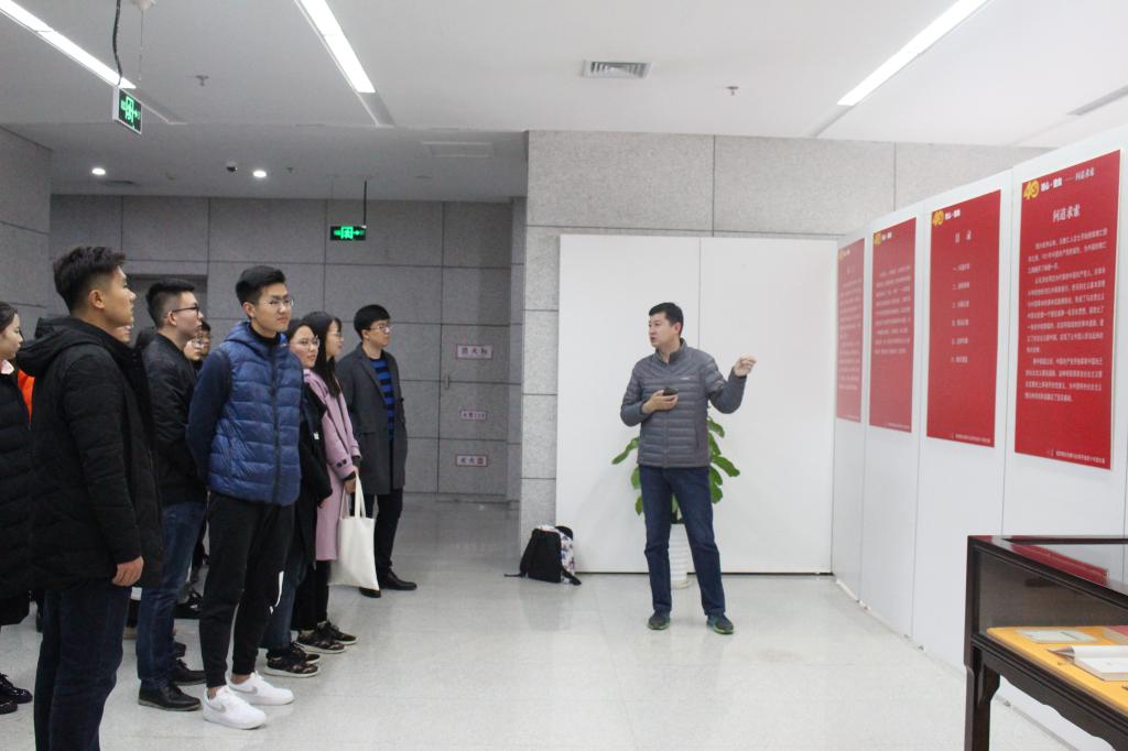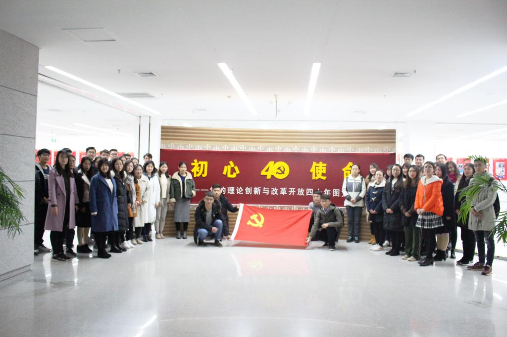 11月8日,经济学院于长清湖校区“天地书声”图书馆一楼展厅开展党的理论创新与改革开放四十周年图文展参观活动。经济学院学生党支部全体成员到场参观学习。