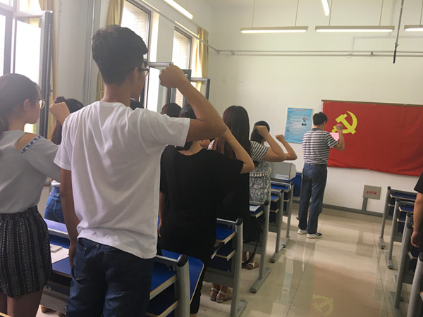 为严格履行入党程序、增强党员入党仪式感,6月30日,经济学院于长清湖校区经济学院楼311室举行本科生第二党支部预备党员入党宣誓仪式。会议由本科生第二党支部副书记李明菊主持,经济学院团委书记、学工办主任、本科生第二党支部书记吕益国和支部全体党员共同参加宣誓仪式。