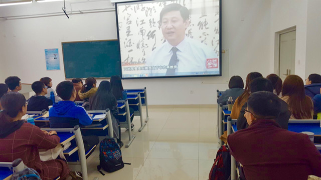 活动中,大家认真观看央视《追寻习近平总书记的初心》梁家河篇、正定篇、宁德篇系列纪录片,跟随荧幕一同回顾了习近平总书记从陕北到河北再到浙江的工作和心路历程。从意气风发的下乡知青到刚正质朴的县委书记再到心怀天下的国家领导,习近平总书记从未忘却初心。在梁家河,他带领群众修建全省第一池沼气;在正定,他引进专家学者开展正确的“半城郊化”发展道路;在宁德,他全力“清公房”走在治理贪腐的第一线,有效保证了百姓的积极性……“心中常思百姓疾苦,脑中常谋富民之策”,总书记追寻初心、心系群众的信念深刻感染着大家,会场爆发阵阵掌声。会后,党员和学生干部们就“初心”开展广泛讨论。预备党员、2014级国际经济与贸易专业卓越班班长王紫薇说:“总书记的初心是一以贯之的,也是他成长和成熟的源泉。作为青年学子和学生党员,我们更应该向习总书记学习,坚守初心,继续前行。”大家纷纷表示,通过此次活动提升了党性修养、坚定了理想信念并将以此为契机进一步强化政治理论的学习、以合格党员标准严格要求自己。
