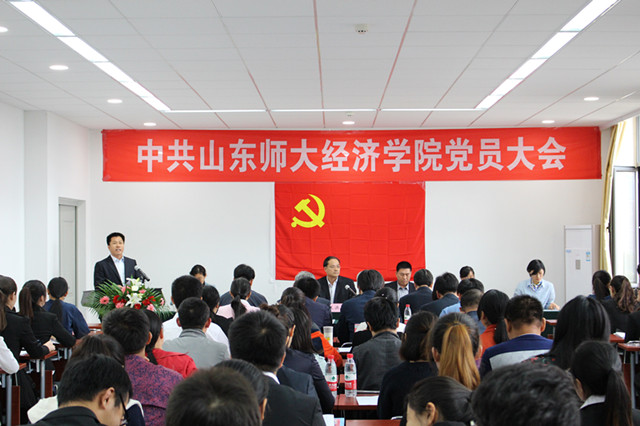 10月20日下午,山东师大经济学院在长清湖校区经济学院楼429学术报告厅召开全体党员大会进行党委换届选举工作。山东师范大学党委常委、副校长王洪禹出席大会,校“两学一做”学习教育工作督导二组组长王澍,党委宣传部副部长、“两学一做”学习教育工作督导二组成员田学超应邀列席大会。学院退休教工党支部、教工党支部、研究生党支部、本科生第一、第二党支部的全体党员参加大会。