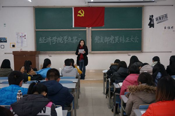12月15日,经济学院学生第三党支部党员转正大会在长清校区综合教学楼C区317教室召开,会议由经济学院学生第三党支部书记、2012级辅导员王茜主持,党支部全体成员参加了会议。