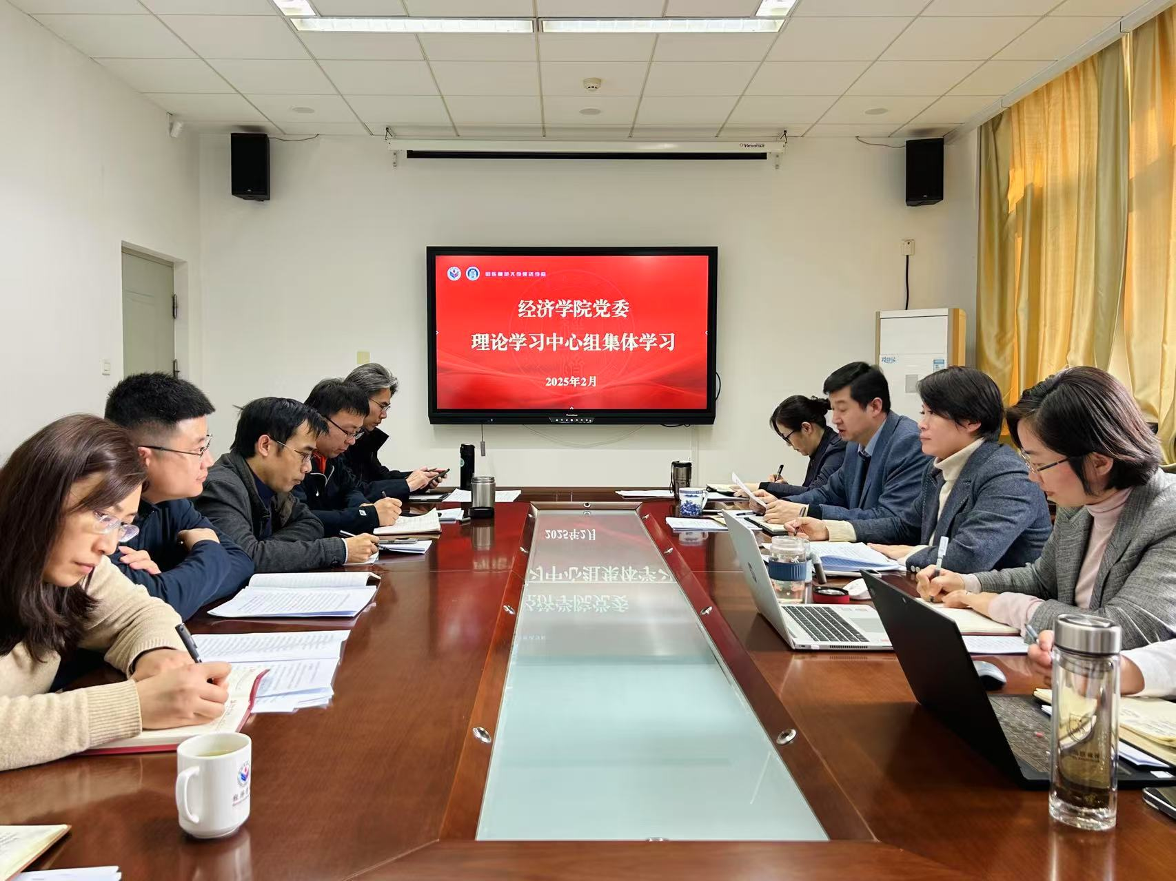 2月28日上午,经济学院党委理论学习中心组在长清湖校区厚德楼414会议室召开本年度第二次集体学习会。学院党委书记王庆荣主持会议,学院党委理论学习中心组成员参加学习,各党支部书记、系主任列席会议。