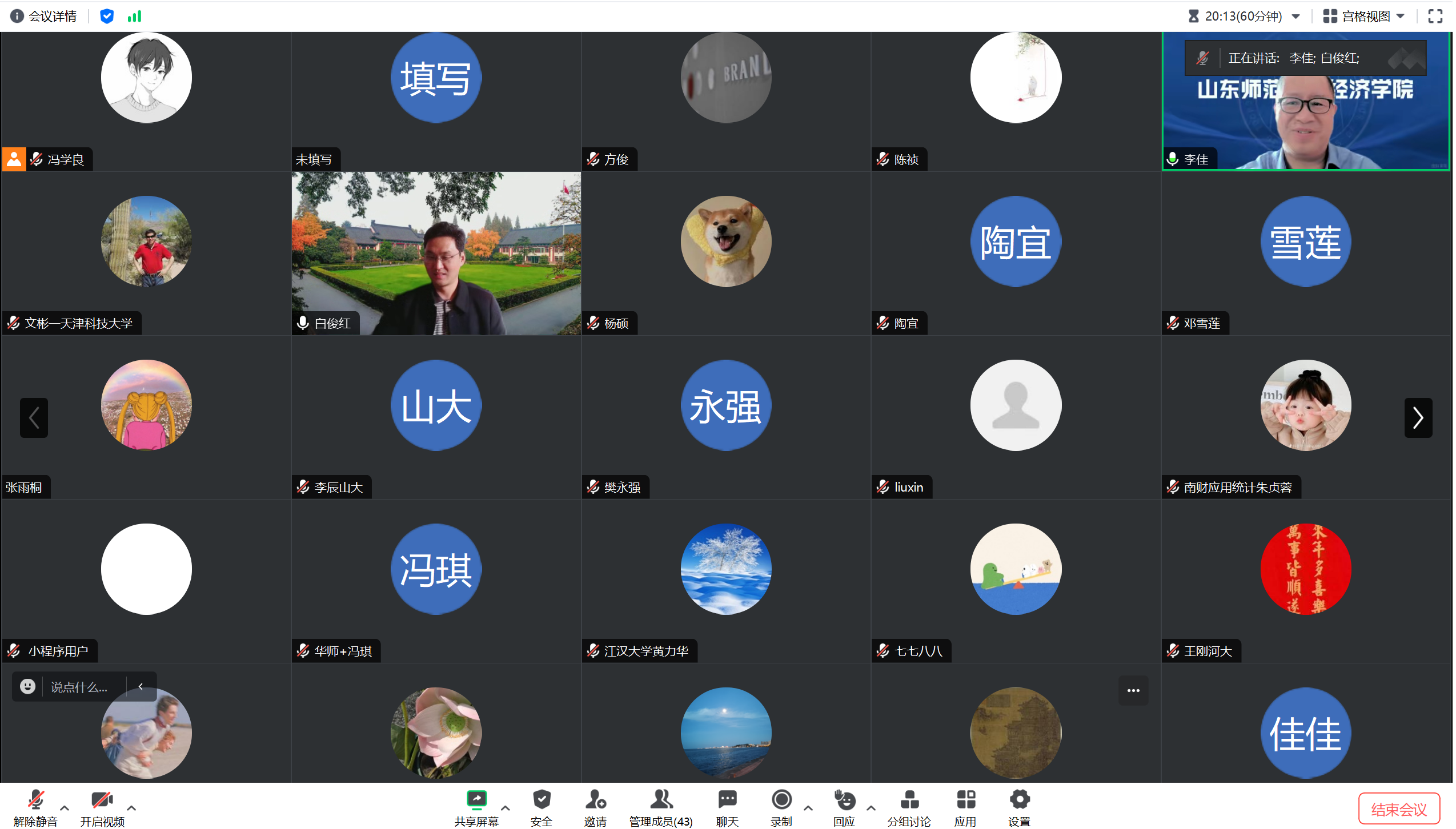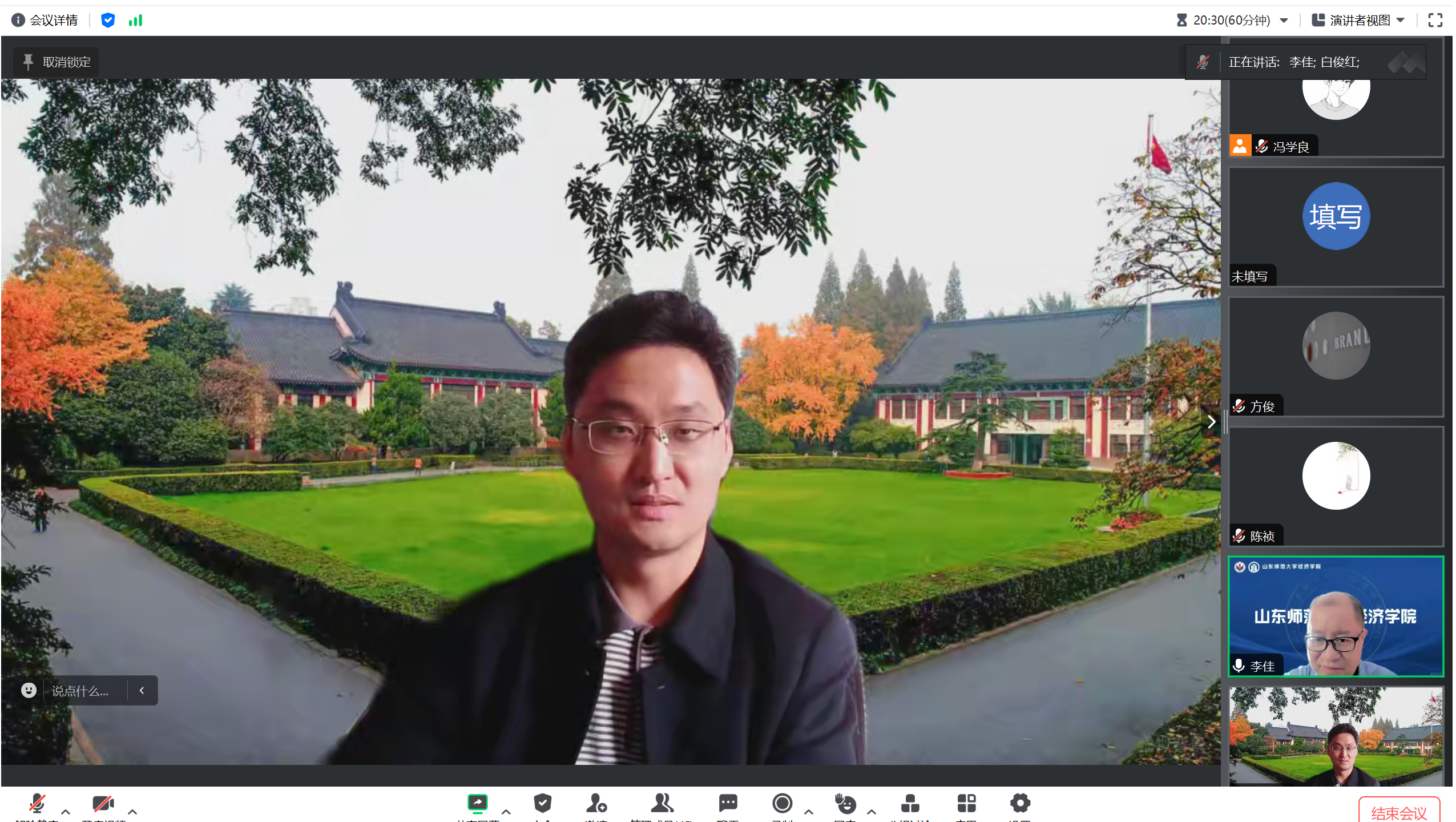 2023年11月16日,经济学院线上举办第三期“湖畔经济论坛”。此次讲座邀请南京师范大学商学院院长白俊红教授,分享题目为《工业机器人应用与民营企业就业》的学术成果。讲座由经济学院院长助理李佳教授主持,来自山东大学、辽宁大学、华中师范大学、南京财经大学、沈阳农业大学等校外师生,以及我院部分教师和研究生在线聆听。