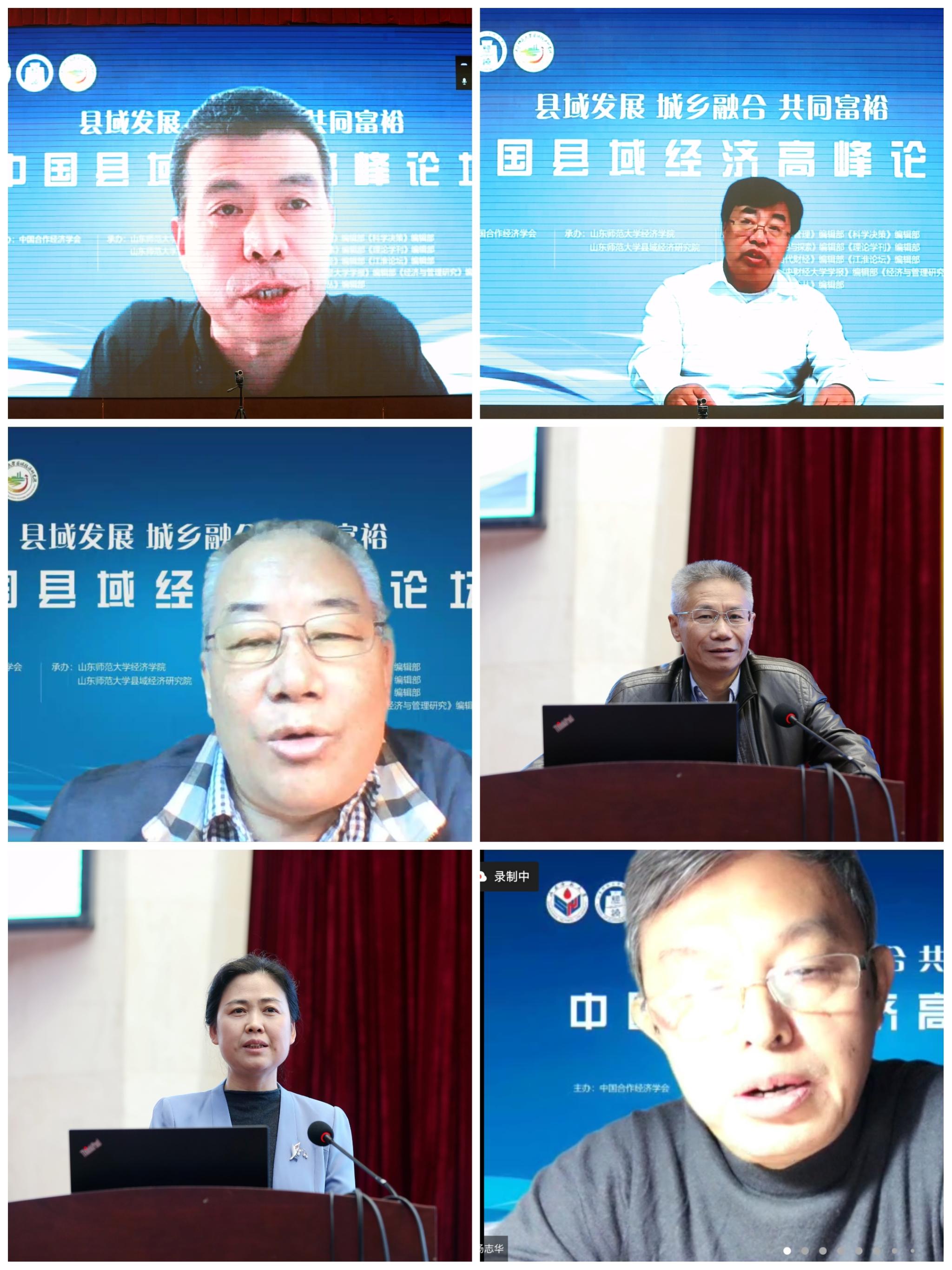 10月22日,中国县域经济高峰论坛在长清湖校区以线下与线上同步进行的方式举办。本次论坛以“县域经济 城乡融合 共同富裕”为主题,由中国合作经济学会主办,山东师范大学经济学院和山东师范大学县域研究院承办。山东师范大学党委书记冯继康,山东师范大学副校长张茂聪,中国合作经济学会会长孙中华,农业农村部农村经济研究中心主任金文成,中国人民大学农业与农村发展学院二级教授、中国合作经济学会原副会长孔祥智,山东大学经济研究院院长、教育部长江学者特聘教授黄少安,中国农业科学院农业经济与发展研究所党委书记毛世平,山东社会科学院党委书记兼院长袁红英,农民日报副总编杨志华等专家学者出席活动。来自北京师范大学、南开大学、中国农业大学、四川大学、对外经贸大学、山东大学、江西省委党校、山东省委党校、宁夏社会科学院、安徽财经大学等44家单位的同仁、师生共400余人参加论坛。论坛开幕式由山东师范大学副校长万光侠主持。