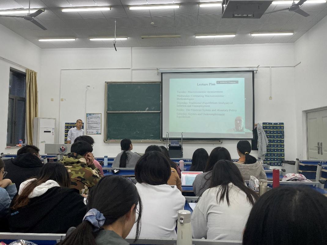10月19日晚,经济学院于厚德楼105教室举办《宏观经济学》线上课程学习。此课程由学院聘请的英国阿伯丁大学商学院Ioannis Theodossiou教授主讲,王骥老师担任课程助教,部分老师、金联培2001班全体同学等到场参加。