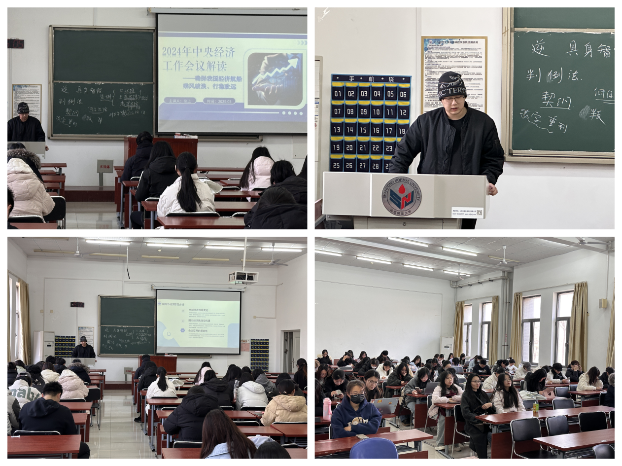 为提升入党积极分子的政治素养和理论功底,促进对经济政策的深入理解,近日,经济学院举办新学期第一期 “小知了” 政治素养提升课堂。本期以 “确保我国经济航船乘风破浪、行稳致远 ——2024 年中央经济工作会议解读” 为主题,由 2023 级国际经济与贸易专业徐上担任主讲,2022 级、2023 级入党积极分子参与学习。