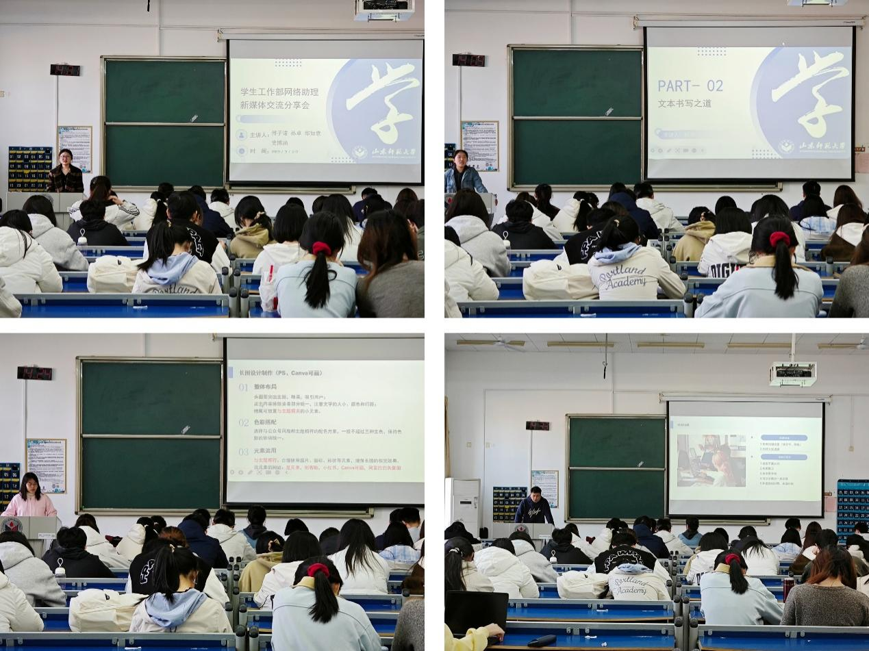 2025年3月20日,经济学院青年媒体中心在长清湖校区厚德楼105教室举办新学期第三期宣传业务能力培训。本次培训邀请山东师范大学学生工作部网络助理傅子诺、孙卓、郑如意、史博涵担任主讲,经济学院青年媒体中心的全体成员以及学生组织各部门的宣传骨干参加学习。