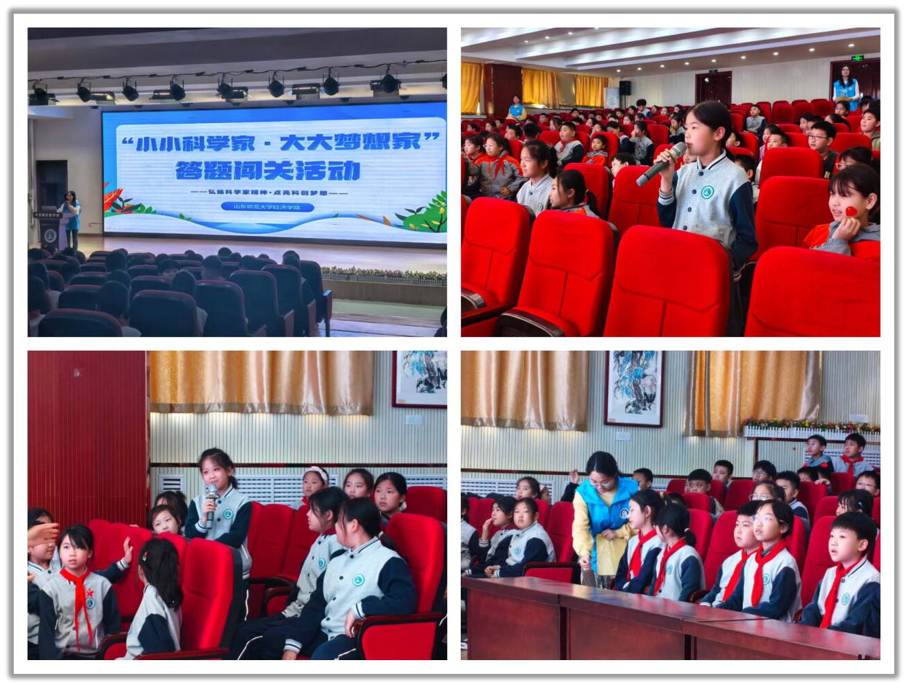 为弘扬科学家精神,点亮科学梦想,激发青少年崇尚科学、探索未知、敢于创新的热情,近日,山东师范大学经济学院青年志愿者走进长清湖实验学校,开展“弘扬科学家精神·点亮科创梦想”主题宣讲志愿服务活动。