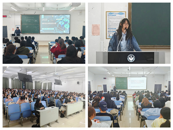 活动伊始,魏晓彤以大学生创新创业为切入点,为同学们带来系统性指导。他围绕竞赛全流程展开细致讲解,从项目申报的材料准备、中期推进的节奏把控到结项验收的标准细则。在此基础上,他还结合自身参赛经历,分享团队协作、项目打磨过程中的经验与心得,用真实的案例为同学们打开创新创业的思路。随后,王语盈聚焦数学学科学习与竞赛备考,构建兼具深度与实用性的学习框架。她特别强调“资源高效利用”的重要性,建议同学们充分挖掘校内图书馆文献资源、同时善用优质网络课程平台,针对性填补知识漏洞。同时,她还分享了“分层刷题+错题复盘”得高效学习方法,帮助同学们在练习中提升解题速度与准确率。最后,代旭婧详细讲解了英语竞赛题目类型,强调“方法适配需求”的学习原则。现场,她以历年英语考试中的阅读与写作为例,分享快速抓取关键信息、构建高分作文框架的实用技巧。她还特别提醒同学们,英语能力的提升离不开日常的积累,要注重日常的语感培养。