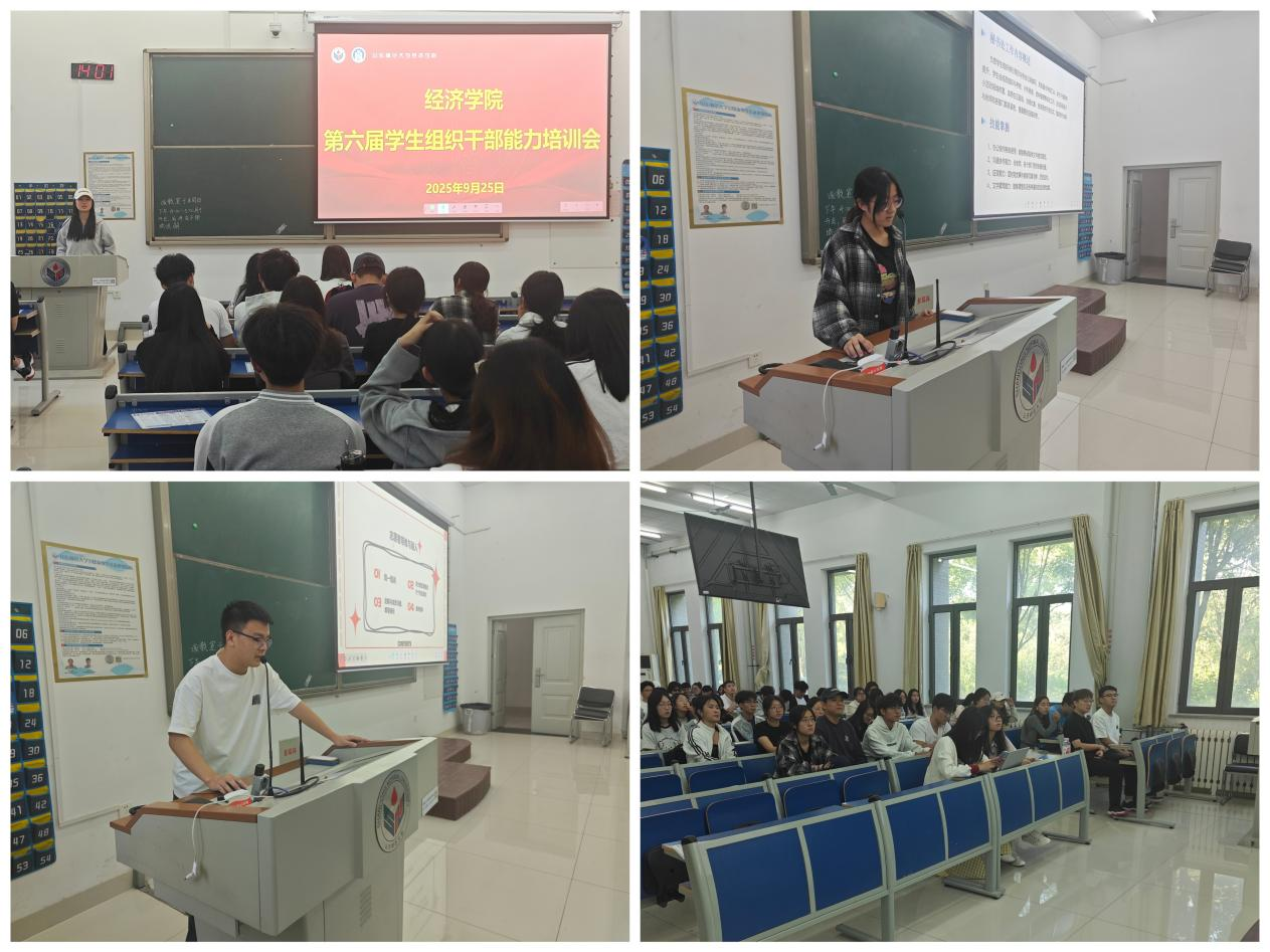 为提升学生干部的综合素养与工作能力,确保新学期学生工作高效、规范开展,9月25日下午,经济学院在厚德楼105教室举办第六届学生组织成员能力培训会。本次活动由经济学院各学生组织主席担任主讲,各学生组织成员副部长参与培训。