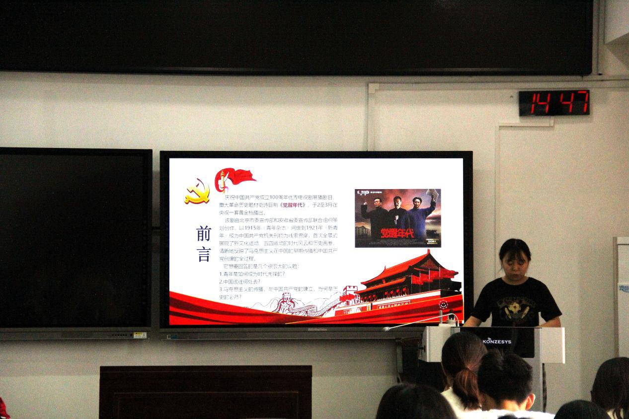 6月3日,经济学院于厚德楼429教室开展以“觉醒年代--探寻建党思想密码”为主题的第十二期“小知了”大学生政治素养提升课堂,本期课堂由金融本1803班刘瑜瑾主讲,经济学院部分预备党员和入党积极分子到场参与。
