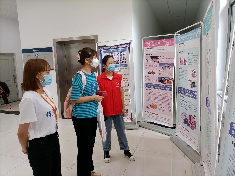 迎新当天,学院防诈宣讲队的志愿者于学院大厅陈列了防范电信网络诈骗海报,分别从“冒充亲人、朋友借钱转账”、“网络贷款诈骗”、“刷单返利诈骗”等方面为新生们深入浅出地讲解了电信网络诈骗的特点、惯用手段以及防范技巧,有效预防相关案件的发生。