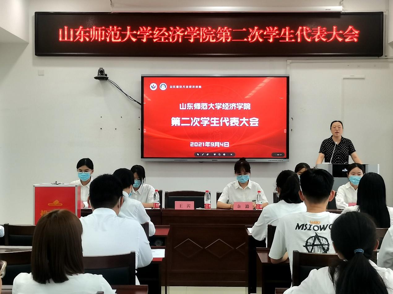 9月4日下午,山东师范大学经济学院第二次学生代表大会于厚德楼429多媒体教室成功召开。全体学生代表共同参加大会,会议由经济学院学生会执行主席余潞担任主持,学院团委书记、学生工作办公室主任王茜出席开幕式并讲话。