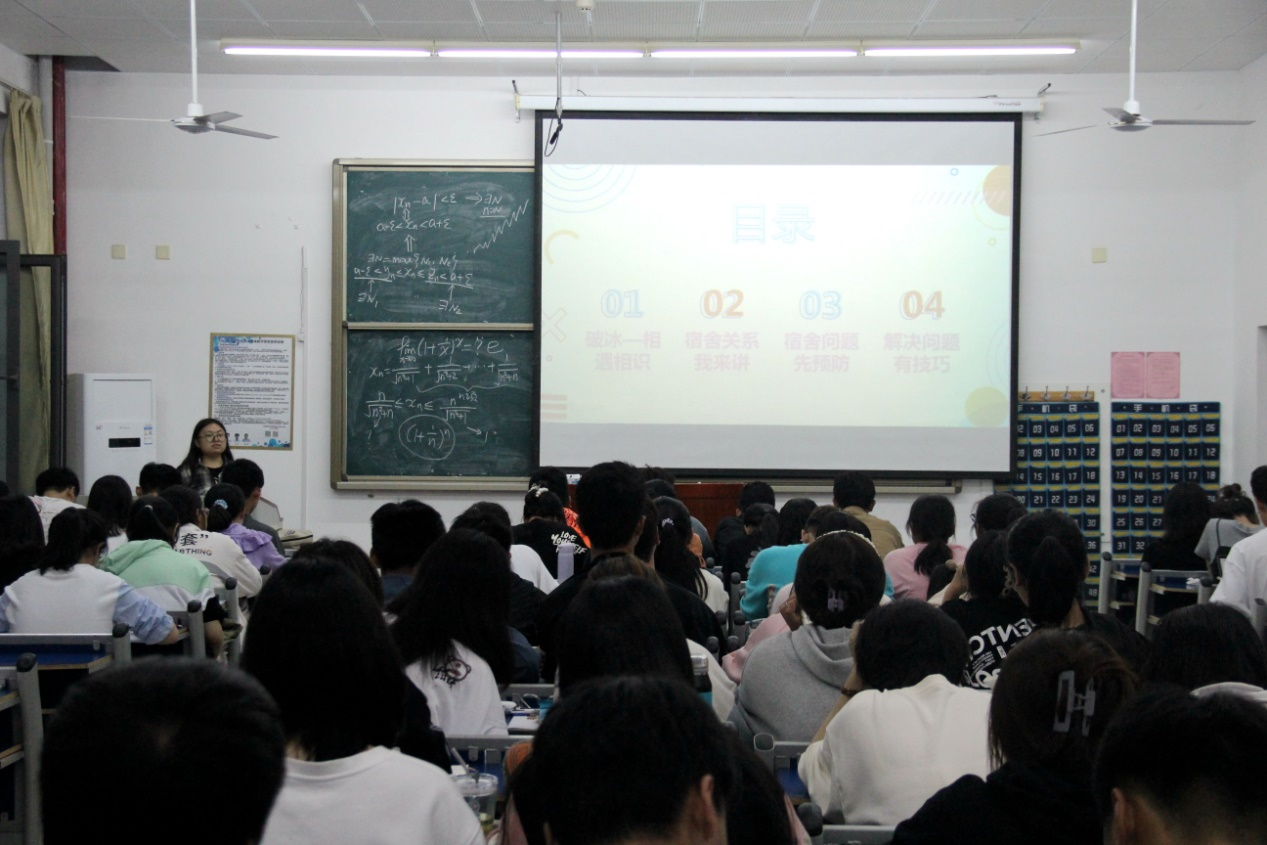 首先,姬钰君向大家讲解了人际关系的概念及宿舍关系在大学生活中的重要性。她表明宿舍关系是校园情感关系的重要支柱,大学宿舍的人际关系会影响到学生个人素质能力的提升、心理健康的形成和人生未来的发展。随后,她结合校园事例指导同学们预防与解决宿舍问题,倡导互帮互助的宿舍集体意识,构建温馨融洽的宿舍氛围,促进宿舍关系的和谐发展,让宿舍成员获得归属感与幸福感。最后,她呼吁同学们学会沟通、提升解决问题的技巧,为将来更好地步入社会奠定基础。
