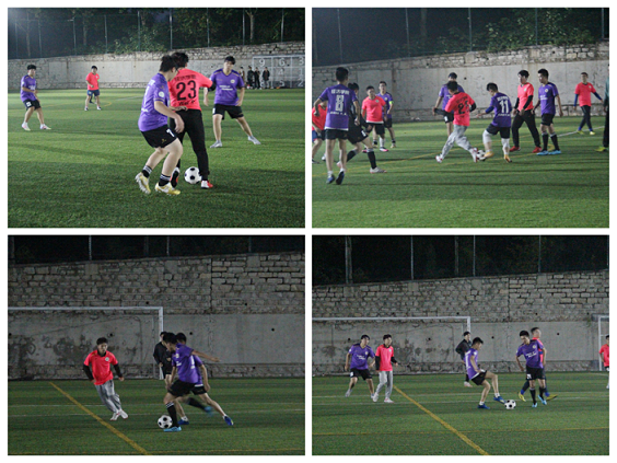赛前,各队队员进行热身训练并商讨战术。随着裁判哨声吹响,19级和20级本科生组成的红队和21级新生组成的紫队迅速进入比赛状态。开场后不久,红队9号刘姿辰在禁区内突破造点,14号韩宇抓住时机命中球门,为红队率先赢得1分。紧接着,红队不骄不躁、乘胜追击,打出战术角球,在各路队员的配合下完成二次破门。在下半场比赛中,紫队毫不松懈并逐渐掌握控球权,多次发起进攻;红队则冷静分析,积极化解对方的攻势并抓住机会开展反击。面对比分差距,紫队重整士气、调整战略,继续寻找进球机会。最后,69号来丁南中场抢断发动反击,连过三人,7号饶卓男接球后轻巧挑球越过门将,将球顶进了球网。随着裁判员的一声长哨,比赛结束。经过激烈的比拼,红队以3:1战胜紫队赢得比赛。赛后,红队队长韩宇表示:在此次球赛中,各球队队员积极参与,努力进球的面貌深深感染了自己,未来面对困难和挫折时,他也将铭记比赛时这种不服输的精神,勇敢战胜困难。