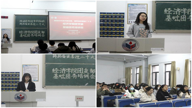 为提高各年级团支部书记的工作能力,推进各年级优秀团支部建设,3月12日上午,经济学院于厚德楼105教室召开第一期团支部基础团务培训会,本次培训会由基层建设部成员2020级郑娅娇和2021级常小萍主讲,学院本科生、研究生全体团干部到场参加。