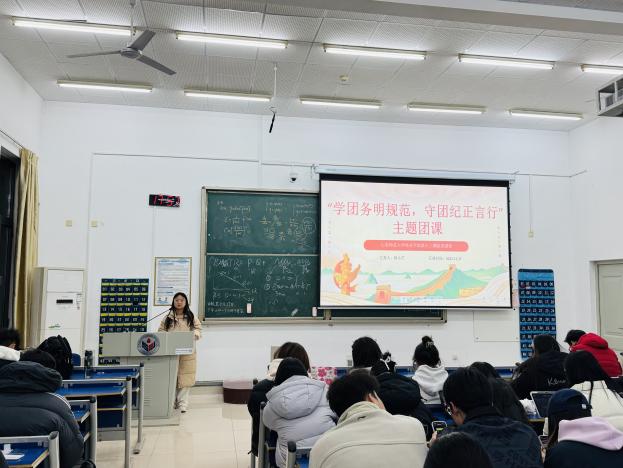 团课围绕“认识加强共青团纪律建设的紧迫性”“学习《中国共产主义青年团纪律处分条例(试行)》”“明确青年团员在共青团纪律建设中的责任和义务”三个篇章展开。活动伊始,杨小艺阐述了共青团纪律建设与党纪建设一脉相承的本质联系,强调在社会思潮交织碰撞的新形势下,面对党的建设新部署、团的改革新任务和青年成长新需求,加强团纪建设是培养合格接班人的必然要求,直接关系到青年一代的成长方向和国家未来。随后,她详细解读了《中国共产主义青年团纪律处分条例(试行)》的总则,结合典型案例,直观展示了违反团纪的严重后果。最后,她号召全体团员深入学习团章团纪,积极参与团的建设,在学习生活中发挥先锋模范作用,传承团的优良传统,严守国家法律法规。