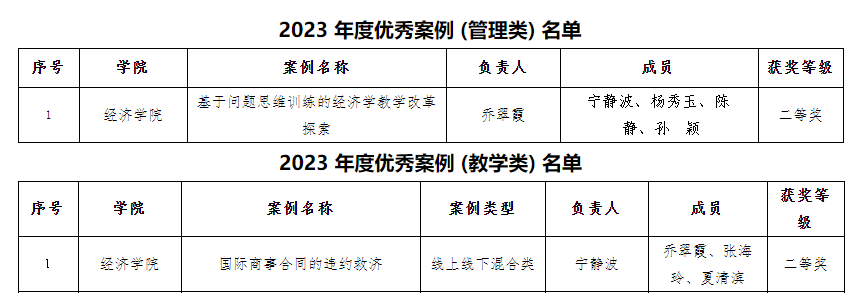 山东省教育厅、山东省高等学校课程联盟近日公布了2023年度优秀案例评选结果,我校共4个项目荣获此殊荣,其中我院获评2项。这两个项目分别是乔翠霞院长的《基于问题思维训练的经济学教学改革探索》和宁静波副院长的《国际商事合同的违约救济》,分获管理类案例二等奖和教学类案例二等奖,充分展现了我院的教学水平和创新能力。