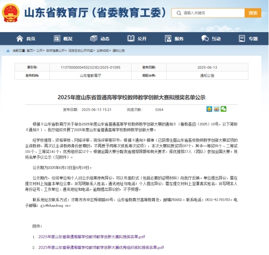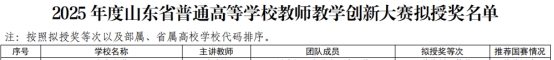 近日,山东省教育厅发布了《2025年度山东省普通高等学校教师教学创新大赛获奖名单公示》,学院金融系教师陈静凭借扎实功底与出色表现,斩获省赛一等奖,并推荐参加国赛。