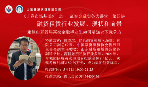 【经济学院第4期证券金融实务大讲堂预告】融资租赁行业发展、现状和前景——兼谈山东省属高校金融毕业生如何增强求职竞争力
