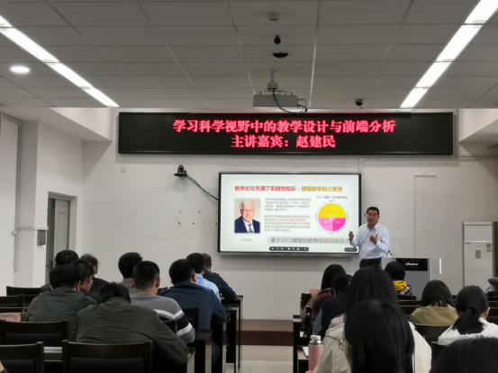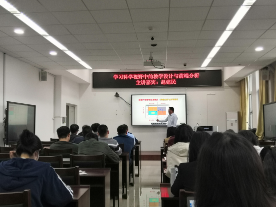 赵老师从教学设计科学理论支持、教学变革的策略空间与变革路径、教学设计的两种基本设计方式、教学设计的静态结构模型、教学设计的PDCA动态过程、教学设计过程的前端要素分析、典型案例介绍等方面为我院29名青年教师带了丰富的教学设计进阶体验。在赵老师的条分缕析中明确思路、掌握要领,为今后的课堂教学实践规划好蓝图。赵老师关于混合式教学设计实践的讲解更是贴合当下教学发展热点,我院老师兴趣盎然,跃跃欲试。