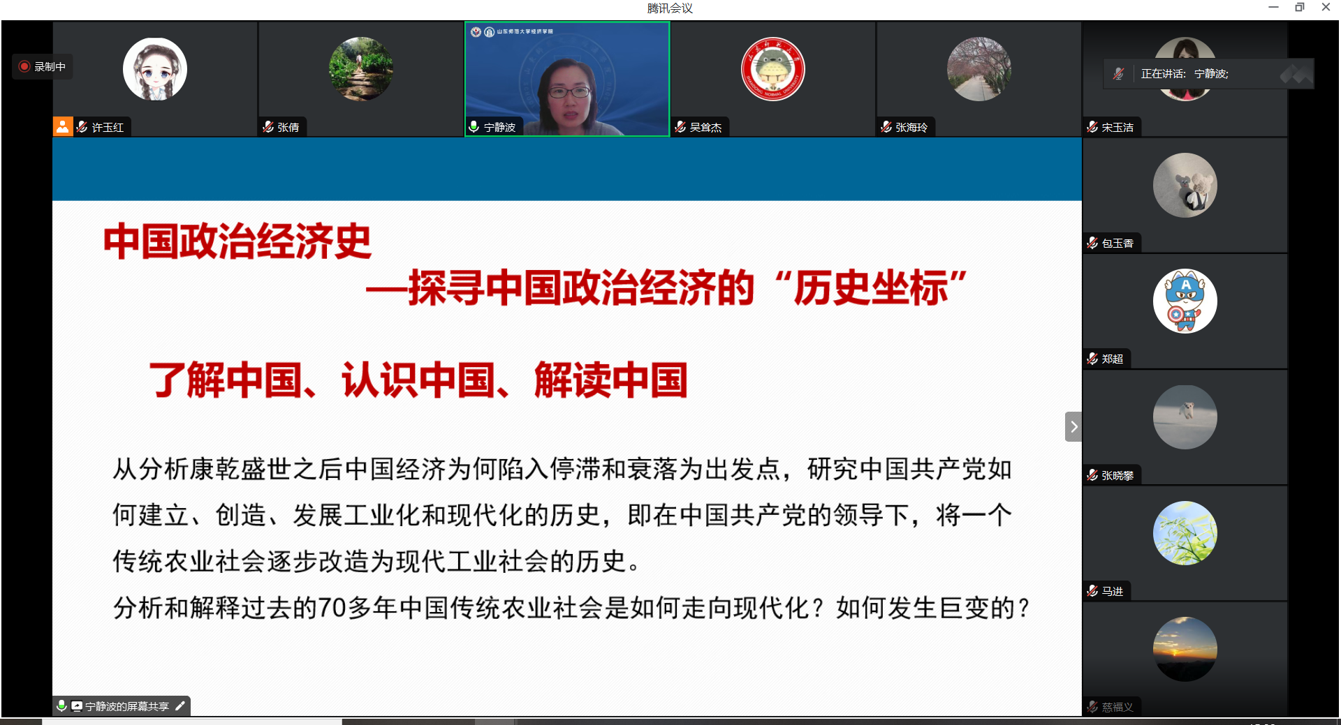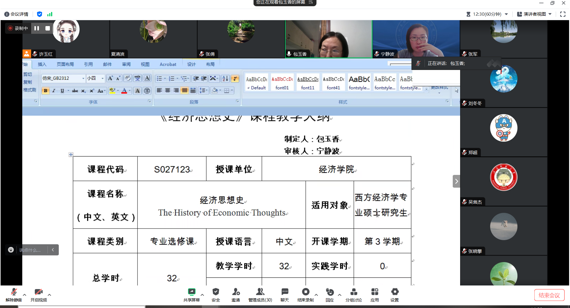 为进一步提升研究生课程教学质量,2023年8月22日下午,经济学院通过腾讯会议开展了研究生教学集体备课活动。此次活动由学院分管副院长宁静波主持,第三学期课程的任课教师主讲,学院党委书记张军、教学督导组专家、研究生任课教师等30余人参加了活动。