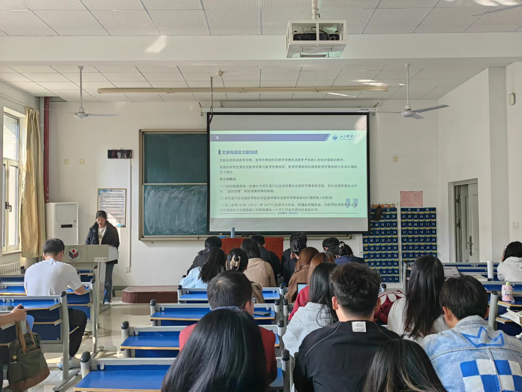 10月23日,经济学院在厚德楼204教室成功举办第170期研读会,本次研读会由2023级国际商务专业硕士研究生董雪担任主讲人,学院研究生参会。