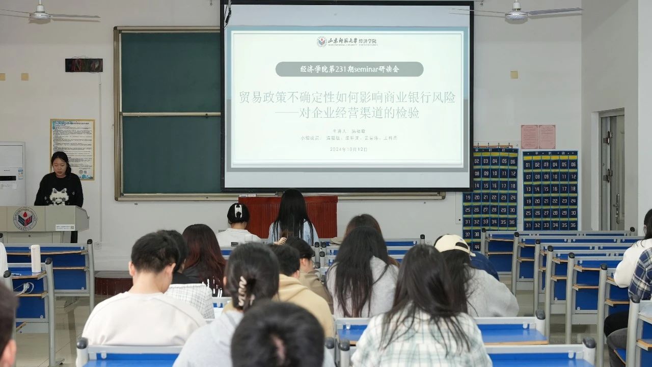 10月14日,经济学院成功举办第231期研读会,本次研读会由2024级国际商务专业硕士研究生温福敏担任主讲人,学院研究生和部分本科生参会。