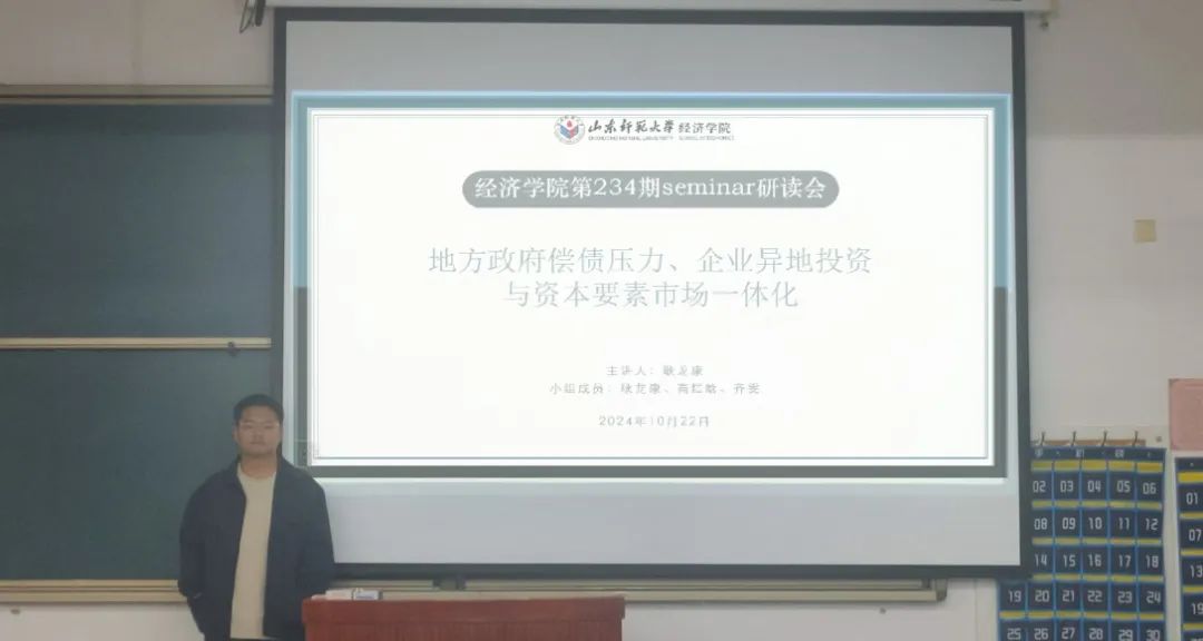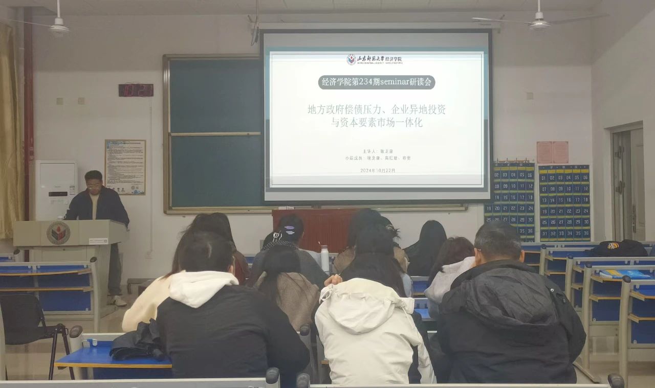 10月22日,经济学院成功举办第234期研读会,此次研读会由2024级理论经济学硕士研究生耿龙康担任主讲人,学院研究生参会。