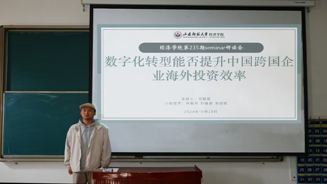 10月28日,经济学院成功举办第235期研读会,本次研读会由2024级国际商务专业硕士研究生马鹏展担任主讲人,学院研究生参会。