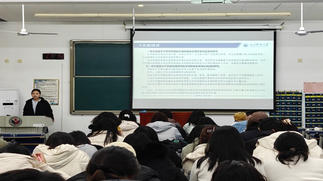 常鑫月与吴明晶同学则就“区域环境规则治理深化对全球绿色贸易的正向溢出效应在不同类型的绿色产品之间是否存在异质性”的问题与主讲人及现场同学进行交流。现场同学积极踊跃地发表自己的看法,营造了积极向上的学术氛围。经过激烈的讨论,同学们一致认为不同类型的绿色产品在区域环境规则治理深化的影响下其贸易溢出效应存在差异,区域环境规则治理深化对环境监测分析和评价设备、固液气污染物处理和控制设备两类产品均有显著的促进效果,但区域环境规则治理深化对可再生能源设备与能源节约设备产品的促进作用存在一定的滞后性。