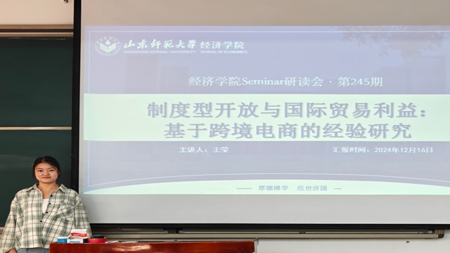 12月16日,经济学院成功举办第245期研读会,本次研读会由2024级国际商务专业硕士研究生王莹担任主讲人,学院2024级全体研究生参会,许晨、闫鹏州、孙成艳和张振兴担任点评人。