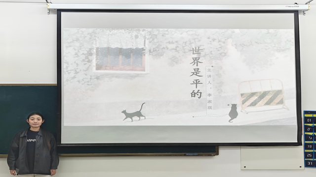 主讲人李淑琪分享了书籍《世界是平的》。她首先从全球化的历史进程切入,重点分析了技术革新、资本流动与制度变迁等推动全球发展的十大核心驱动力,揭示了全球化进程对重塑当代社会发展的重要意义。随后,主讲人详细阐述了全球化4.0的核心内涵,指出这一阶段最显著的特征在于数字技术的突飞猛进及其在各领域的深度渗透。数字技术的迅猛发展提升了全球信息流通效率与资源配置水平,也催生出一系列颠覆性的商业模式和产业变革。同时,全球化4.0也伴随着诸多结构性挑战,如数字鸿沟的扩大、信息安全风险的增加以及不同国家和地区间的技术竞争加剧等。最后,主讲人指出在全球化4.0浪潮下,无论是个人还是企业都必须着力提升三大核心素养——敏锐的环境适应力、持续的创新驱动力以及开阔的全球格局观,唯有如此才能在瞬息万变的国际环境中把握机遇、应对挑战。