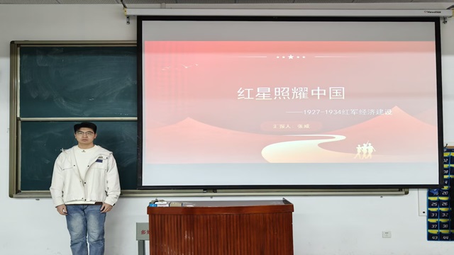 主讲人张威分享了《红星照耀中国》一书,他首先以土地革命、经济建设和战略转移三个时期的经济实践为例,揭示了经济政策与革命命运的内在联系,阐明了经济基础与上层建筑的深刻互动,接着深入解读了书中记录的红军长征壮举、苏区生活细节,剖析了作品用事实打破偏见的核心价值,最后指出该书既为国际社会了解中国革命提供了有力的历史佐证,也凝聚了国内革命力量,对引导当代青年理解革命历史,树立坚定信念,勇担时代责任具有重要价值。