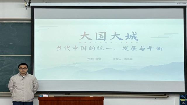 主讲人曲兆振分享了陆铭所著的《大国大城》一书。他首先提炼出书中两大核心观点,一是城市病的根源并非人口过多,而是城市规划缺乏前瞻性,公共服务供给未能与人口趋势相匹配;二是人口自由流动是实现个人收益最大化、国家资源最优配置及缩小城乡收入差距的关键。随后,主讲人指出,若要实现区域高效发展,解决房价陡升等现实问题,政府及相关城市治理部门亟需打破人口流动壁垒,提升城市规划与治理水平,推动公共服务均等化,让人口自由流动成为激活社会经济活力、实现全民共同富裕的重要力量。