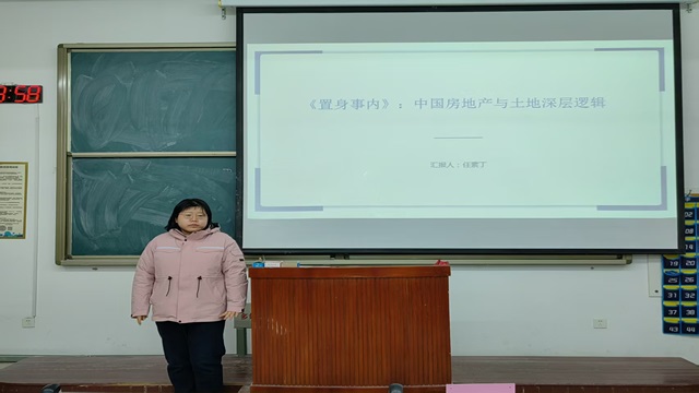 主讲人任素丁围绕《置身事内》一书展开分享。她首先以“土地财政”这一经济改革模式为切入点,深入拆解了分税制改革后地方政府依托土地发展的内在机制;随后阐述了地方政府权力运作与经济事务的关系,指出地方政府在我国的经济发展中扮演着重要的角色;接着深入探讨了决定地方事务范围的因素,包括地方政府的收入来源、支出需求以及相关政策变动。最后主讲人指出地方政府通过出让城市土地使用权,将土地从资源转变为资本,推动了工业化和城市化的发展。