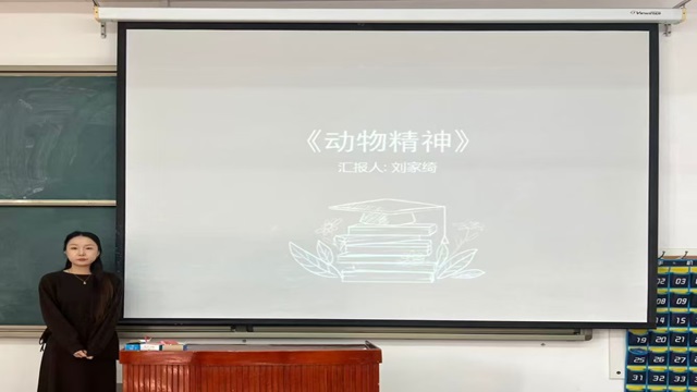 主讲人刘家绮分享了《动物精神》一书。她首先提炼出本书的三大核心观点:一是经济决策并非完全理性,而是深受心理与情绪等非理性因素驱动;二是动物精神具体表现为信心、公平感、腐败与不良行为、货币幻觉、故事与叙事这五种关键心理力量;三是传统经济学模型长期忽视非理性心理力量,难以解释现实经济波动。接着,主讲人以2008年金融危机为例,剖析了“信心崩溃”“不良金融行为”与“危机叙事”三者如何相互交织、彼此强化,最终引发全面的经济冻结。最后,她指出本书不仅是对传统经济学的必要修正,更是帮助同学们理解现实经济世界的指南。