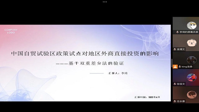李琦分享了题为《中国自贸试验区政策试点对地区外商直接投资的影响——基于双重差分法的验证》的文章。文章基于2007-2017年中国城市面板数据,利用双重差分法(DID)研究了中国自贸试验区政策试点对地区外商直接投资(FDI)的影响。研究发现,自贸试验区的设立能够显著地促进地区FDI的增长,并且,自贸试验区的设立对地区FDI增长的促进作用随着城市等级的升高呈现出“边际效应递减”的规律。