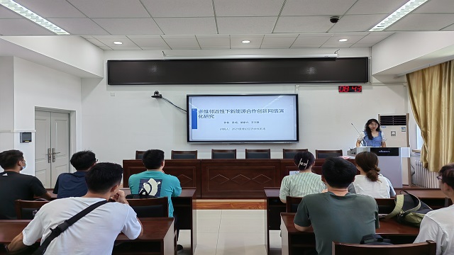 林美鸿分享了题为《多维邻近性下新能源合作创新网络演化研究》的文章。文章选取合作创新绩效作为因变量,选取地理、技术、组织和社会邻近性作为自变量,选取规模相似性和研发经验相似性作为控制变量,并对这些变量数据进行标准化处理。在此基础上,将1999—2018年分为四个阶段,每5年为一个阶段,建立研究模型,采用 QAP 多元回归分析方法,探究 地理、技术、社会和组织邻近性在不同阶段对新能源产业合作创新网络演化的影响。研究结果表明: 地理邻近性对新能源产业合作创新网络演化的影响呈下降趋势,组织邻近性始终对该合作创新网络演化发挥着积极作用,技术邻近性对该合作创新网络演化的影响程度逐渐下降,社会邻近性是推动该合作创新网络演化的重要因素。