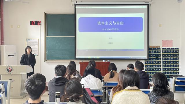 最后,参会同学深入探讨、互动交流。同学们分别就“经济自由与政治自由的具体关系”和“弗里德曼的政治取向”两方面提出疑问,主讲人邱悦从“充分就业与微观企业主体角度”和“经济权利的自由”两个方面分别给出解答。此次研读会展现了我院良好的学术氛围,加强了同学们之间的互动交流,拓展了同学们的学术视野,提高了同学们阅读经典名著的积极性。