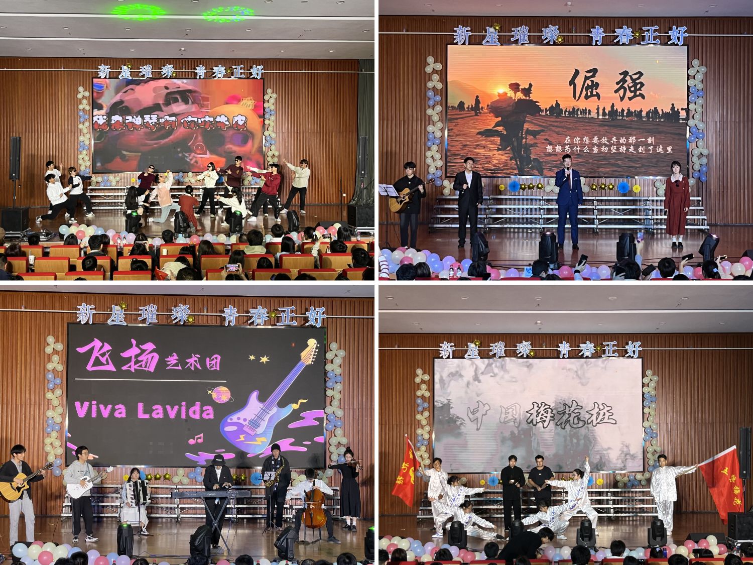 晚会在活力四射的开场表演《Viva lavida》中拉开序幕,充分点燃了全场观众的热情,正式开启第一篇章。金融类2304班同学以一首《我的梦》惊艳亮相,彰显了青春与活力。紧接着,由2023级本科生和研究生班级分别带来的《淋雨一直走》、《仰望星空》、《少年中国说》、《最美的太阳》等歌曲更是充满艺术感与浪漫感,展现青年勇敢追梦的热情与决心,为观众带来了一场视听盛宴。不只是音乐,随之而来的武术表演《寒梅韵》刚柔并济,展现了力量的唯美和青春的张力,将晚会推到了高潮。在第三篇章中,一首《追梦赤子心》昂扬向上,一首《骄傲的少年》燃烧热血,一首《有我》有梦则刚、初心不忘,文艺团的《歌曲串烧》更是余音绕梁。活动最后,彼岸话剧社的《非遗拾萃·唢呐》让我们见证中华文化的传承与发展,《盼夏》让我们不再焦虑和迷茫,为晚会画上了圆满的句号。