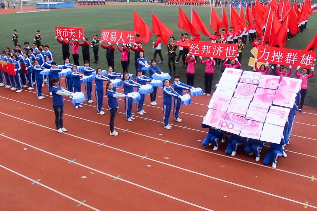 12日上午8:30,运动会正式拉开帷幕。开幕式上,各院方队英姿飒爽,步伐整齐,口号响亮。经济学院方队统一身着天蓝色运动装,精神饱满,步伐整齐,齐声高呼着“货币天下,贸易人生;经邦济世,力挫群雄”的口号昂首走来。方队展示以货币演变为主题,用队形变化向观众展现了不同历史时代的货币,队形变化巧妙,圆形方孔铜钱、元宝、人民币等各色货币图牌的转换,生动展现了中国货币的演变历史,将源远流长、瑰丽独特的中国经济文化娓娓道来——恰似以传统为舟、创新为帆的经济学院,于岁月中迸发出新的力量!精巧的构思成为方队展演中的一大精彩亮点,奇思妙想与生动表现令观众耳目一新,博得阵阵掌声与好评。