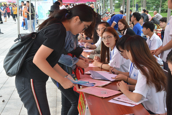 本次迎新工作分为协调组、接待引导组、缴费单分发组、资格审查组等十个工作小组,分别负责迎新现场的接待、办理新生入学报到手续、宿舍接待和宣传、后勤等工作。为使新生能明晰当天报到流程,学院制作了提示标牌、流程示意图等,并安排礼仪人员在新生报到处向新生介绍报到流程,提醒新生携带报到所需物品。在报到处旁边,学院为陪伴新生入学的家长专门设立了家长休息区,为家长提供座椅和饮用水;同时设立的国际交流咨询处、专业交流咨询处等平台,包含学院准备的经济学院基础资料及出国交流材料,便于广大家长初步了解学院情况、相关专业及交流项目。