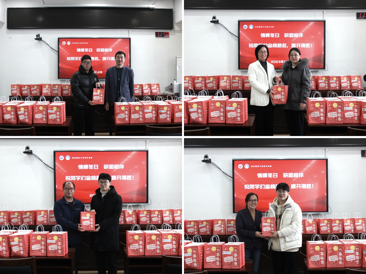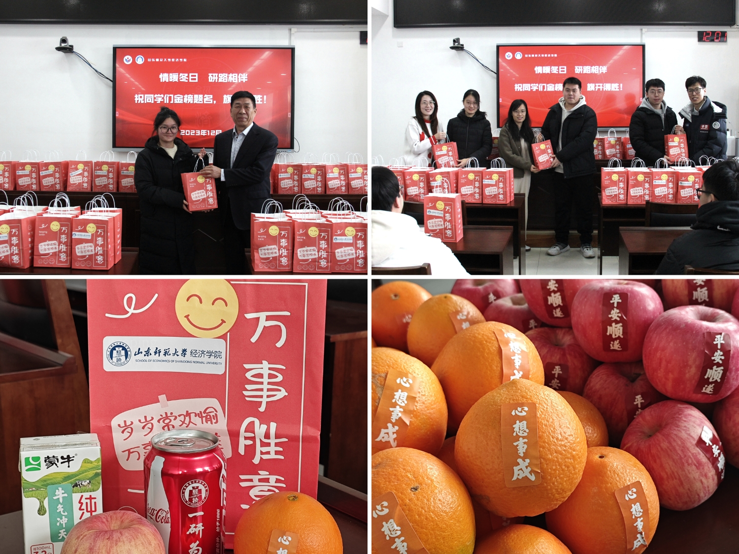此次考研慰问活动不仅包含了学院对考研学子满满的祝福和殷切的希望,也让处于紧张备考时期的学子感受到了冬日的温情,体现了学院对考研学子的关心和重视。衷心祝愿所有2024届考研学子心想事“橙”、金榜题名!