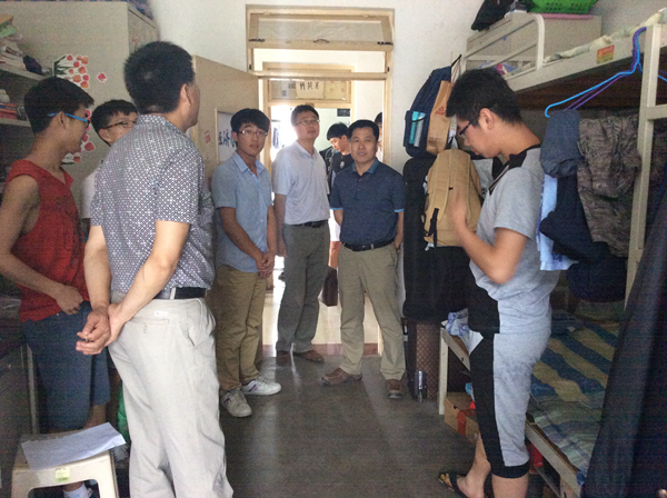 在15号公寓楼男生宿舍,张军与同学们促膝长谈,了解毕业生的就业状况、思想动态,倾听毕业生对大学生活的感悟、对外来的畅想及对学院发展的意见和建议;张宗斌在与毕业生交流中,寄语毕业学子踏上工作岗位后,务必坚守自己内心的选择,不受世俗影响,用勤奋和汗水浇灌出人生最为璀璨的花朵。在10号公寓楼女生宿舍,刘永慧与毕业生同学们谈起毕业前的个人感悟,提醒同学们妥善安排好就业、生活、情感各方面事宜,做到精彩毕业、文明离校;赵文静详细询问了同学们在办理毕业手续、行李寄发等方面的安排,表示学院作为同学们的家会随时为大家提供帮助和支持,并温情寄语同学们为母校争光添彩;乔翠霞针对升学毕业生和准备考研“二战”同学的困惑,结合自身生活、工作经验进行了指导,希望同学们在学术科研之路上勇往直前、勇攀高峰。交流中,老师们亲切真诚,同学们主动热切,师生之间真情流露,气氛和谐。最后,许多同学主动与老师拥抱道别,对老师多年来的教育培养表示由衷的感谢。