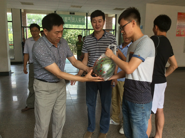 寒来暑往四载,西席桃李情浓。为表达学院师长对毕业生的真挚关怀和送别之情,进一步营造温馨和谐的毕业氛围,6月16日,经济学院组织开展了“院长书记进宿舍,师生毕业话离别”活动。学院党委书记张军、院长张宗斌,党委副书记刘永慧、副院长赵文静、乔翠霞与全体辅导员、教务员,走进长清湖校区毕业生宿舍,为同学们送去清甜的西瓜与真挚的慰问,与大家共话大学时光,共抒离别之情。