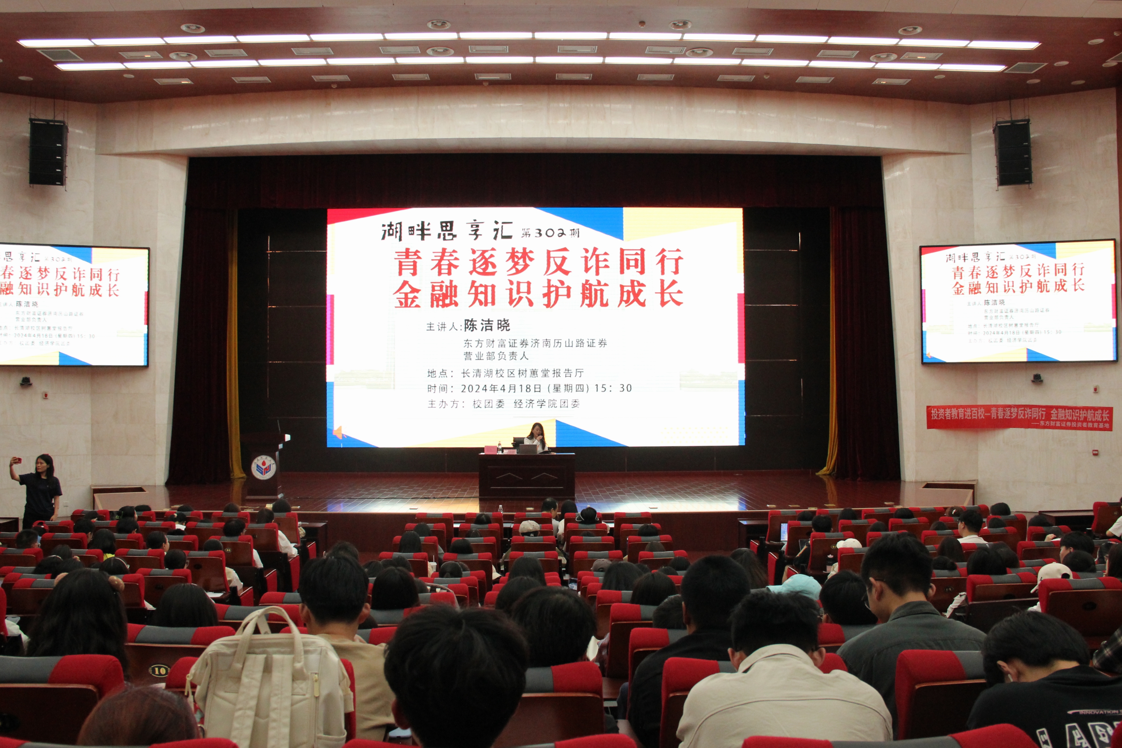 4月18日下午,“青春逐梦反诈同行,金融知识护航成长”金融安全知识讲座于树惠堂报告厅成功举办。本次报告会由东方财富证券济南历山路证券营业部负责人陈洁晓主讲,2022级辅导员王学主持,学生工作办公室主任、团委书记姚侃出席,各学院学生代表参会。